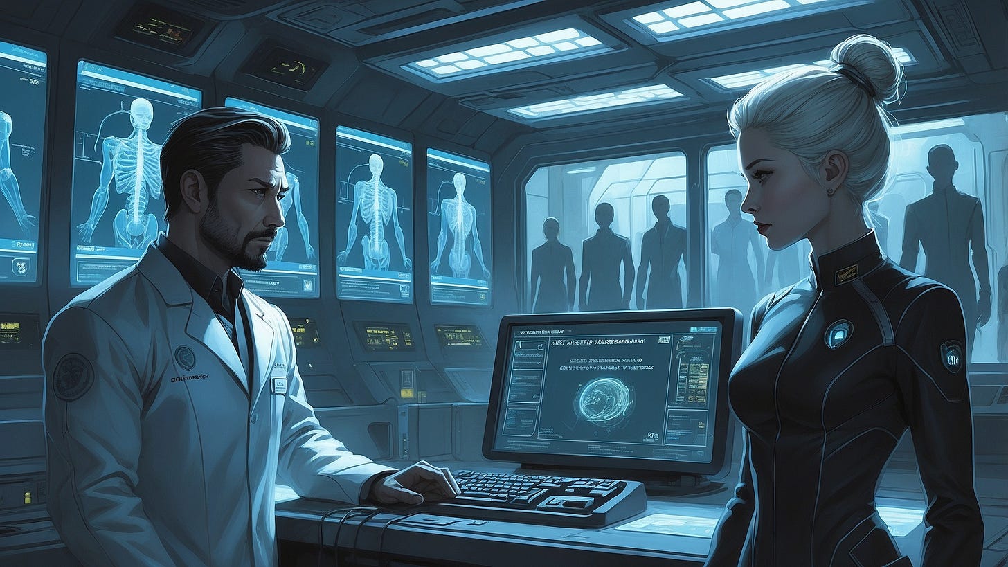 The meeting room at the Sovereign Horizon Coalition’s orbital research station, Erebus-9, was illuminated by a gentle blue light, with walls adorned by holo-screens showcasing genetic schematics, cybernetic enhancements, and biometric data. Aria Fontaine stood at the center, observing as the members of the SHC’s inner circle put the finishing touches on their agenda.